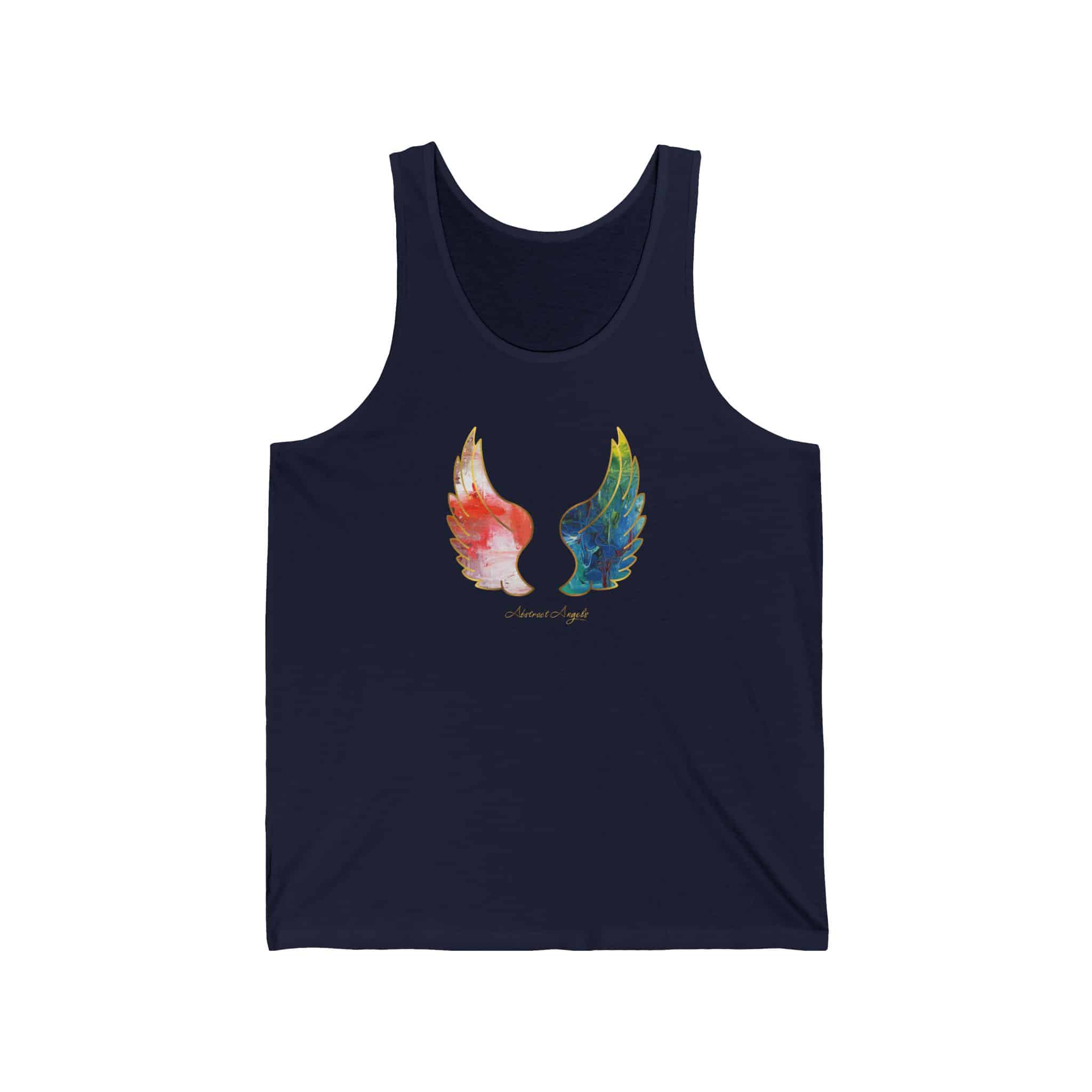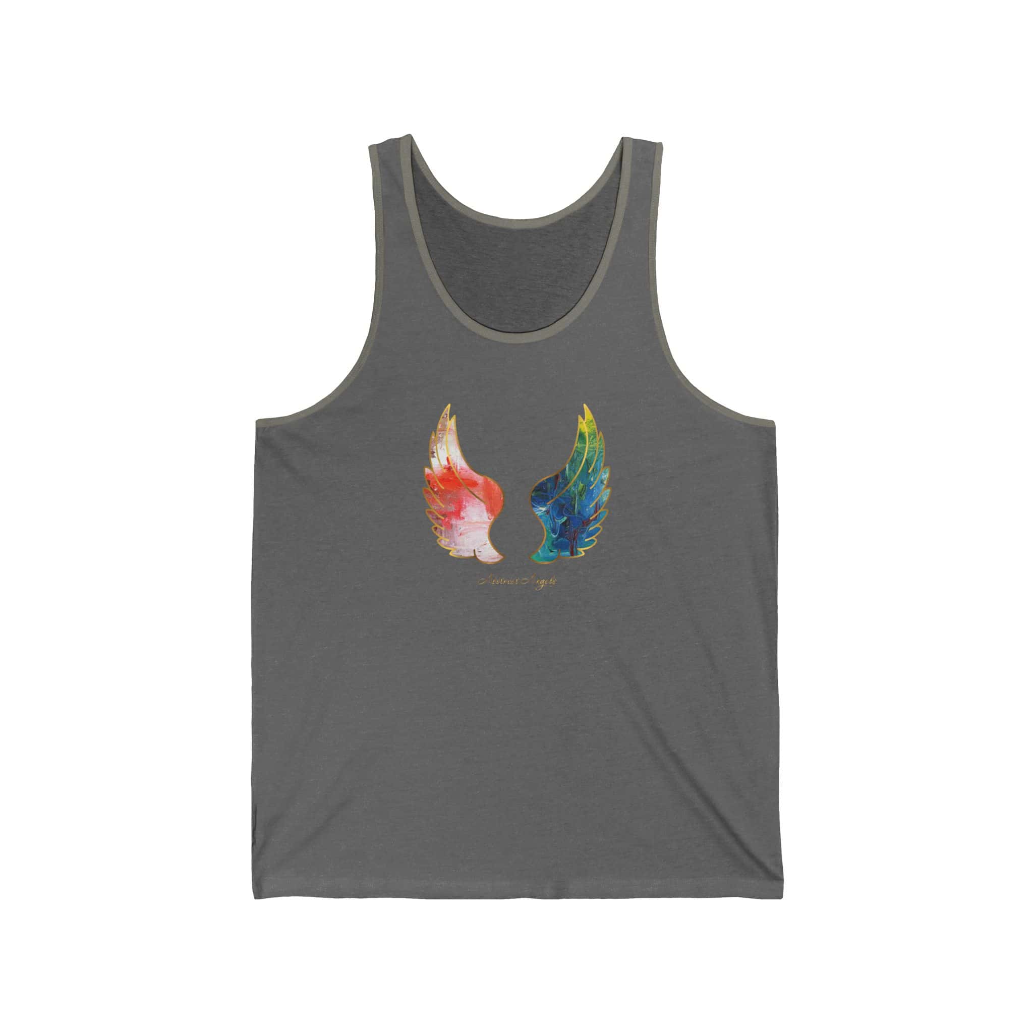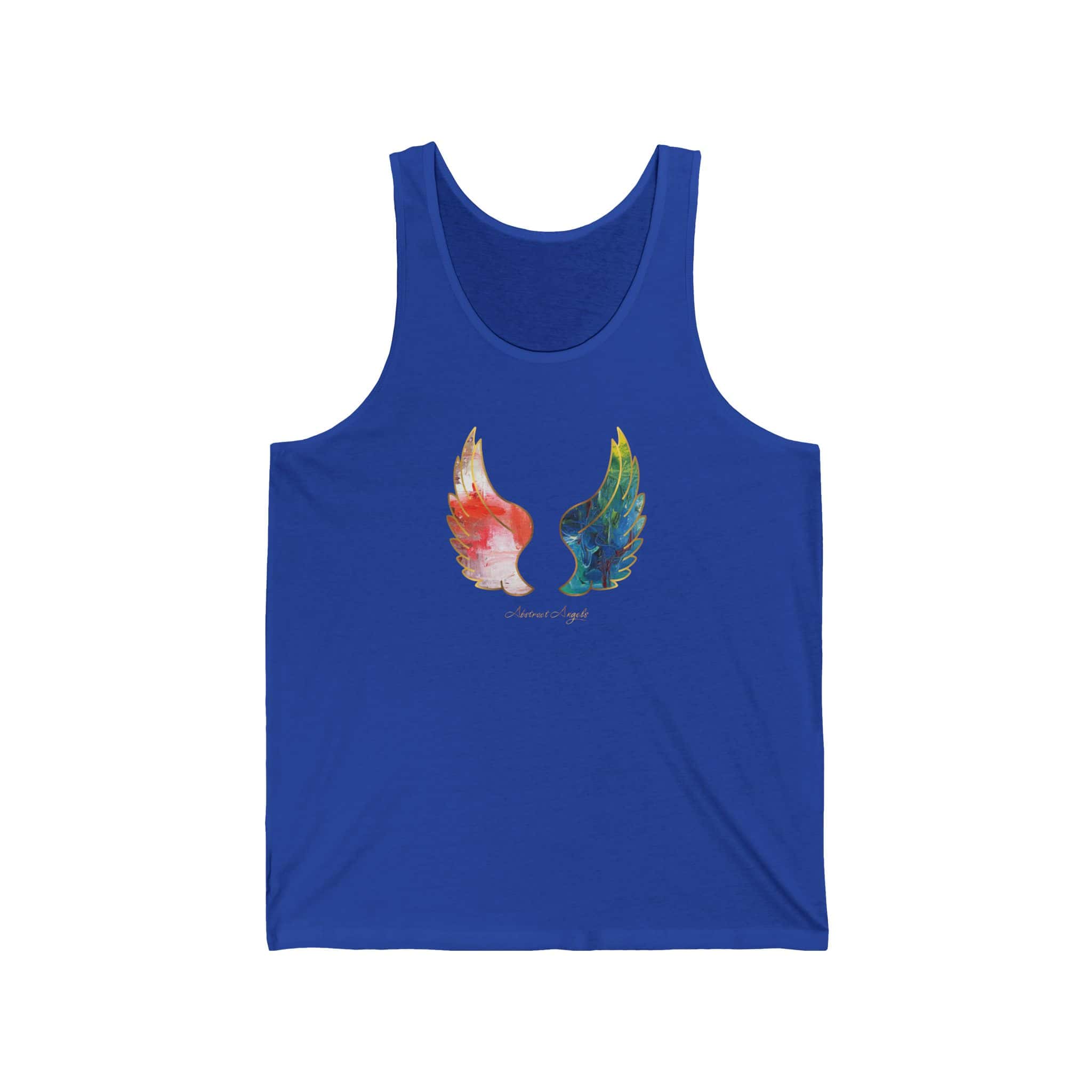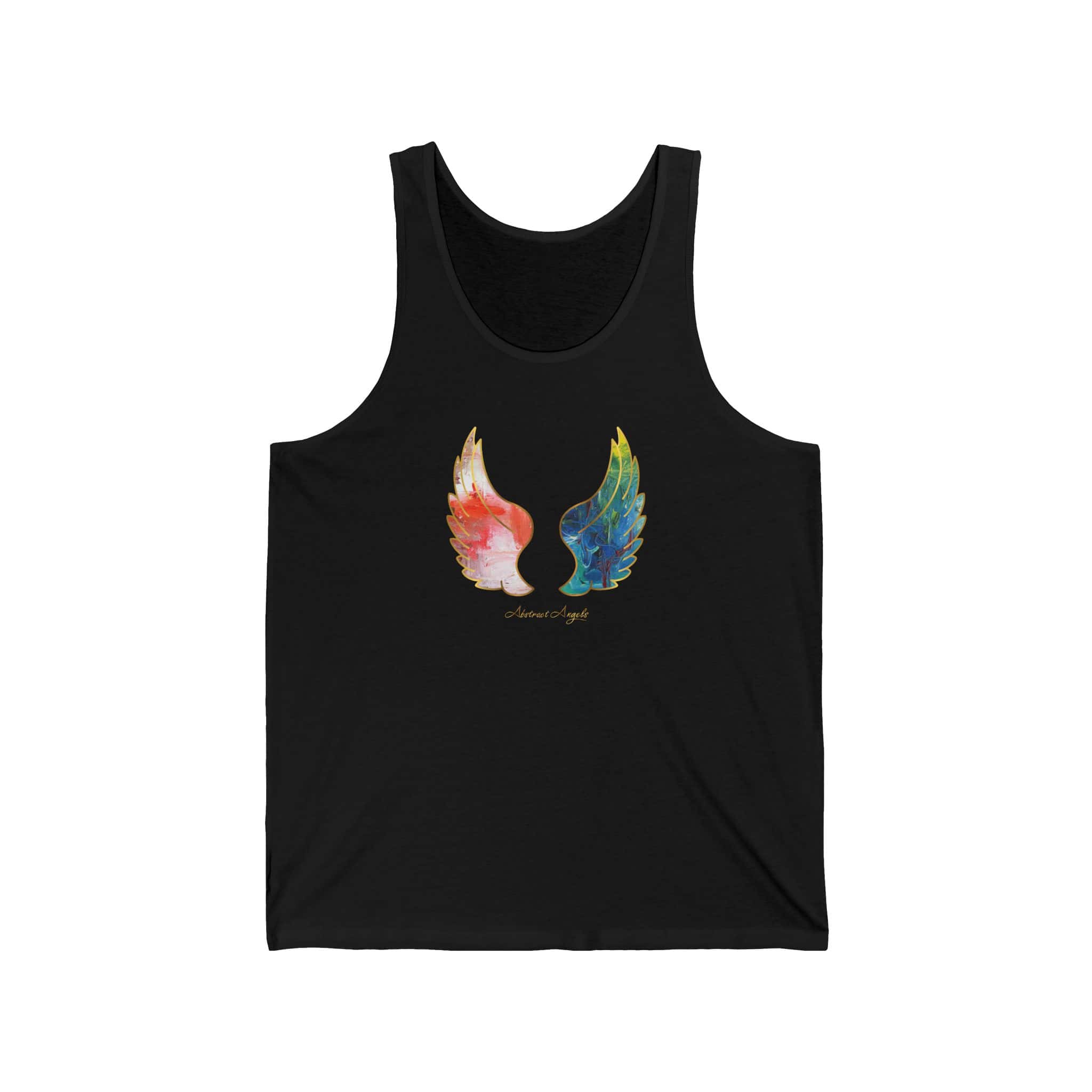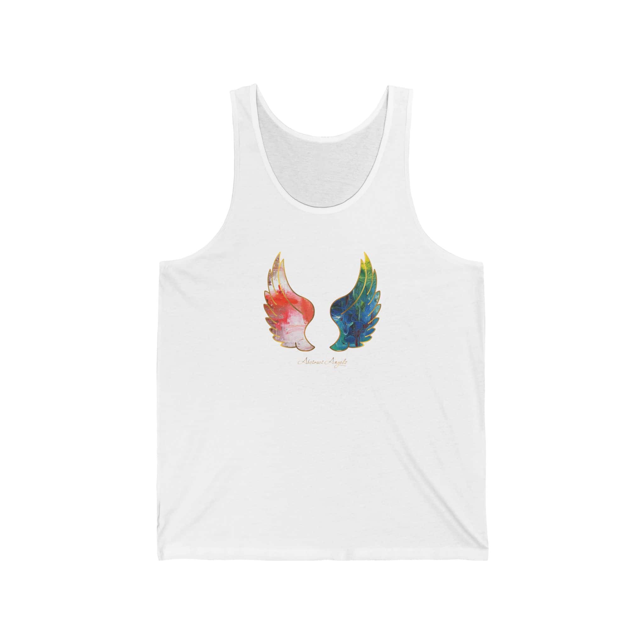 Abstract Angels Tank Top are quality made and they will bring luck and protection to your life. Perfect for the summer at the beach or in the mountains. The item is unisex, making it suitable for both men and women who appreciate unique, abstract designs. Great for spiritual individuals who believe in angels and positive energy. Ideal for wearing on vacations, spiritual retreats, or casual outings.